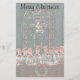 Navidades de ilustracion de época celebran un diseño religioso con un coro de niños, niños y chicas cantando música. Una capilla con hermosas vidrieras de colores con la Madonna y el Niño y un Navidad coronaron con un arco.