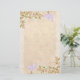 La decoración de la casa incluye flores de melocotón suaves con mariposas malvas sobre un delicado fondo de melocotón de encaje.