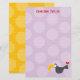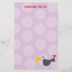 Un simple dibujo estilizado de un lindo loro toucán bebé negro de dibujos animados que lleva un gran corazón rojo (amor) en su espalda, sobre un fondo morado claro con un patrón de lunares grandes y gordos, papel de notas en blanco para papelería personal de agradecimiento para niños.