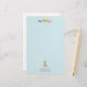 Papel de escritura cremoso y delicioso. Diseño de acuarelas dulces y deliciosos macarones franceses - en la parte superior un trío de macarones dulces lado a lado y en la parte inferior algunos macarones más apilados unos encima de otros. colores pastel bonito: violeta, verde limón, amarillo, rosa y azul. Está situado sobre un fondo azul pastel. Fácilmente personalizar / personalización con su nombre y dirección.