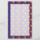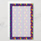 Esta obra de arte presenta coloridos corazones arcoiris sobre un fondo morado oscuro.