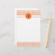 Patrón de quatrefoil naranja monogramado. Un patrón sencillo y elegante. El fondo es blanco.