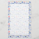 Este diseño de arte folclórico cuenta con una escena de invierno boscosa con pájaros, copos de nieve y árboles.