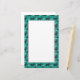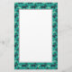 Estacionería diseñada con un patrón repetido que presenta una adorable garganta sonriente con orejas disquetas y un hueso de perro. Fondo verde. Un marco blanco con un borde negro sobre el que escribir.