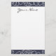 Personalizado lindo, jovial, caprichoso patrón de garabato floral de Ikat hecho de contornos pétalos de flores blancas contra un fondo azul marino. ¡Este es el regalo perfecto para la muchacha que ama el capricho y la diversión! ¡personalizar agregando tu nombre, fotos y/o texto para crear tu propio diseño único!