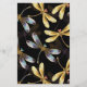 Patrón sin foco con oro, joyas, libélulas brillantes con las detalladas alas brillantes sobre fondo negro. Dragonfly de oro.