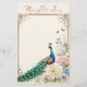 Hermosa Stationery, un precioso pavo real situado en un jardín de flores pastel rodeado de mariposas