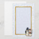 Buena pareja romántica. Papel de novias y novios pingüinos con fondo azul pastel para toda la correspondencia boda.