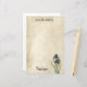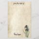 Este es un diseño de bonito hecho para parecer viejo como papel de pergamino vintage adornado con un ilustracion estilo guía de campo de iris azul barbudo en la esquina inferior derecha. El texto dice: desde el escritorio de y un nombre de muestra que contiene el lugar para que usted añada su propio nombre. Todos los campos de texto son plantillas para facilitar el personalizar. Papelería. Viñeta.