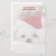 Papel de tono con una adorable foto de un lindo perrito blanco con un gorra de navidades rojos.