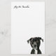 Ésta es una pintura de la acuarela de un perro negro del pitbull que esté mirando maneras laterales y parece ser profunda en pensamiento. Ella tiene piel blanca en su pecho.