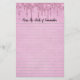 Papel de carta forrado con brillantina rosa goteando. Utilice para casa o negocio. El texto en la parte superior es editable.