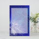 Arte de vacaciones de invierno con un elegante patrón de ramos de pino y pinecones en azul y blanco sobre un fondo helado de azul y violeta.