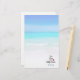 Estacionamiento con la imagen de una playa tropical de aguas turquesas cristalinas y una playa de arena blanca. El texto dice arena y besos salados. Un poco de corazón rojo y una decoración que divide rápidamente el diseño.