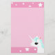 Un sistema de inmóvil ofreciendo un ilustracion adorable del vector de un unicornio blanco con una melena azul que fluía en un fondo rosado afiló con las estrellas.