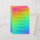 Hermoso diseño de gradiente colorido y brillante, perfecto para tu boda. Es una forma perfecta de agregar algunos colores de arcoíris increíbles a tu divertida boda. ¡Por favor, revisa el resto de la colección de Programa de Boda Gradiente Arcoíris Brillante! Muchos productos encantadores que combinan para hacer que tu boda sea cohesiva y bonita. Diseñado por la artista a tiempo completo Kelsey Lovelle. ¡Avísame si deseas algo personalizado!