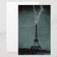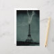 Este diseño presenta una fotografía temprana que muestra un rayo que golpea la parte superior de la Torre Eiffel en París, Francia. De hecho, es una de las primeras fotografías que muestra claramente el rayo en un entorno urbano. La fotografía proviene de un libro publicado por Camille Flammarion en 1906 titulado "Trueno y relámpago" (en francés, "Tonnerre et éclaires"). El rayo que aquí se muestra golpeó la Torre Eiffel el 3 de junio de 1902, entre las 9 y las 22 horas. La Torre Eiffel se construyó entre 1887 y 1889 como entrada a la Feria Mundial de 1889, y se ha convertido en un ícono cultural global de Francia, ya que es una de las estructuras más reconocibles del mundo. La torre lleva el nombre del ingeniero Gustave Eiffel, cuya compañía la diseñó y construyó.