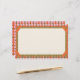 Bright orange striped faux washi tape adorns the corners of this bright and colorful multi pattern design with hand drawn grid and plaid patterns in orange, pink and green, bordering a spacious cream writing paper.