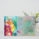 Noche de máscaras venecianas coloridas, extravagantes y vibrantes. Sofisticadas mujeres rubias con máscaras de plumas, dorado brillante, telas de fucsia, trajes barrocos de baile enmascarado con plumas y góndolas. Pintura acuática de colores vivos en rojo, amarillo, naranja, verde azul, rosa, chispas doradas, inspirada en el Carnaval de Venecia y máscaras venecianas. Este diseño fresco y artístico es también un hermoso regalo para Mardi gras (Martes Gordo), El día de San Valentín.