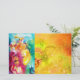 Noche de máscaras venecianas coloridas, extravagantes y vibrantes. Sofisticadas mujeres rubias con máscaras de plumas, dorado brillante, telas de fucsia, trajes barrocos de baile enmascarado con plumas y góndolas. Pintura acuática de colores vivos en rojo, amarillo, naranja, verde azul, rosa, chispas doradas, inspirada en el Carnaval de Venecia y máscaras venecianas. Este diseño fresco y artístico es también un hermoso regalo para Mardi gras (Martes Gordo), El día de San Valentín.