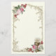 Elegante papelería católica con un cáliz dorado vintage con el radiante monograma IHS, simbolizando la Eucaristía Santa. Enmarcado en un oligarca de oro antiguo y adornado con rosas rojas y rosas rosadas, este diseño es perfecto para notas de agradecimiento de la Primera Comunión, correspondencia sacerdotal, letras de intención masiva o reflexiones espirituales. Una reverente mezcla de sagrada y floral belleza.