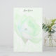 Papel de cartas. Rosa irlandés verde con shamrock en la mejilla, arte original.