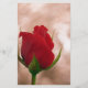 Una sola rosa roja en nuestro jardín. Todavía en brote, lentamente desplegando sus preciosos pétalos de cañón, esperando estallar en flor. Fotografía tomada de su belleza natural. Un solo rosa, la encarnación del amor y el romance.