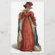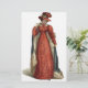Regencia elegante - placa de moda de la era. Señora inglesa en rojo con el gorra.