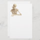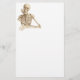 Un esqueleto feliz y sonriente con la mano huesada sobre su barbilla.