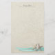 Papel personalizado Starfish y ribbon con nombre y dirección en la parte superior en una selección de estilos de fuente. El diseño temático Starfish and aqua ribbon beach complementa las invitaciones a juego con gusto.