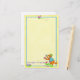 "My Garden Friends" crea la papelería de perfección para notas de Garden Club. Este perro jardinero ama su jardín y amigos, libélulas. Puso su espacio en el jardín para darle una sonrisa que le hace el corazón a una libélula que descansa sobre su pata. El perro está vestido con un chaleco azul, botas verdes y un gorra de jardín verde y sostiene una flor mientras conversa con la libélula. En el jardín hay plantas con flores moradas y rosas. El fondo es amarillo con un borde azul. Este adorable gardener Dog calentará su corazón.