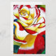 con diseño artístico original de la pintura acuarela de Sacha Grossel de la flor rosa de té híbrido rojo y amarillo contra fondo verde. Este diseño de arte contemporáneo y luminoso presenta un diseño macro floral de gran envergadura, con un motivo botánico, de un estilo luminoso, colorido para los amantes de las flores y los rosas.