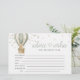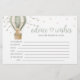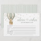 Cute and heartwarming “Adventure Awaits” baby shower advice and wishes cards for the parents-to-be, featuring an adorable teddy bear with a green bow floating in a whimsical sage green hot air balloon. This charming design adds a playful and sweet touch to your celebration.