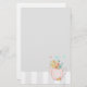 Estacionería con un ilustracion caprichoso. Una tetera rosa con un pequeño corazón rosado en el centro y un ramo de flores en el interior. Delicadas mariposas de colores pastel revolotean por todas partes.