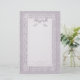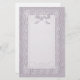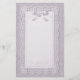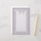 El diseño de papel dulce presenta un fondo de damasco de bonito con un overlay de borde de encaje y un acento de arco de bonito en tonos pasteles de lavanda.