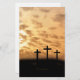 Tres cruces contra una puesta del sol, Pascua hermosa inmóvil se pueden modificar para requisitos particulares con la herramienta fácil del texto de Zazzle. Grande para el servicio o la invitación de Pascua de la salida del sol de la iglesia. Diseño original de Angela Castillo y de Cherie Haines.