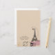 Un fondo rosado, junto con la torre Eiffel, un sello del pasaporte de París Francia, un compás, y 2 cajas del gorra del vintage con un par de sandalias de tiras es el ajuste de este diseño contemporáneo. ¡Compruebe hacia fuera nuestros sobres a juego para saber si hay estos efectos de escritorio!