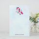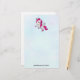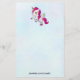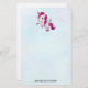 Papel de estacionería con unicornio alado blanco con melena rosa, cola y pezuñas. El cuerno tiene anillos de color arcoiris y se parece a una golosina de caramelo. Este lindo unicornio está criándose en sus patas traseras. El corazón rosado dulce en la mejilla y las largas pestañas de una niña. Personalice con un nombre en la parte inferior.