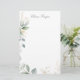 Elegante Estacionario Personalizado bordeado de hojas verdes y doradas al estilo acuarela.