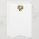 Stationery paper with a cute image. Blue. pink and cream colored flowers with green leaves. Set inside a green flower pot with a green plaid cloth hanging over the side.