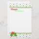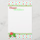 Navidades coloridos con papel hecho en blanco, con un divertido patrón de puntos rojo, verde claro y turquesa de polka encabezado y pie de página que está rodeado de gráficos que parecen cremallera verde. Un sorbo de hueso decora la parte inferior izquierda del papel y Felices Fiestas en texto rojo y verde, en la parte superior. Personalizar para agregar texto a este documento de bonito de vacaciones, o escribir comprar como está y escribir a mano la carta de sus Navidades.