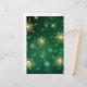 Papelería Xmas copos de nieve dorados sobre fondo verde
