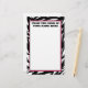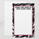 Estacionamiento con borde de estampado de cebra con guarnecido rosa. El texto puede ser personalizado. la línea 1 dice "desde el escritorio de" La línea 2 dice "Su nombre aquí" Inserte su propio nombre. Si desea cambiar el tamaño de fuente, color o estilo, puede editar con la herramienta de diseño.