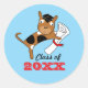 Graduación Cachorro con Diploma Azul Pegatina Personalizó este producto añadiendo su número de año de graduación y color de fondo Ilustracion y diseño por Poramit