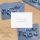 Tarjetas de tamaño de negocio que dicen "Gracias" en 3D texto azul plateado en un lado, y al revés puedes escribir tu propio mensaje o eliminar el texto para no tener ninguno.