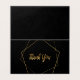 Esta tarjeta de agradecimiento moderna presenta un fondo negro de negrita resaltado con los elegantes contornos del pentágono de efecto oro y elegantes letras de guiones. El sofisticado diseño es sencillo pero llamativo, por lo que es ideal para expresar gratitud y aprecio. El espacio en blanco que hay en el interior proporciona un amplio espacio para un mensaje personalizado. Por favor, tenga en cuenta que el oro está impreso.