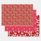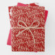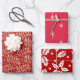Navidades envueltos de papel multi-pack que incluye: 1) Gold Merry Christmas on red backpack, 2) Gold stars on red background, 3) White winter folage on red back ground.