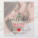 Tipografía sencilla, elegante y moderna Wedding Save The Date wine label con un corazón rojo y una foto adorables. Los regalos perfectos para una pequeña cohorte de sus visitantes más queridos y especiales. Su huésped sentirá la emoción cuando les envíe estos exclusivos, adorables y memorables favores que tienen algún significado personal y mantienen una memoria duradera después del día de la boda.