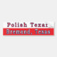 Muestra tu orgullo en tu ciudad natal. Este hermoso diseño de pegatinas de parachoques presenta una cubierta de bandera polaca roja y blanca y las palabras texano polaco arriba y bremond, Texas abajo.