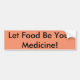 Esta pegatina del parachoques contiene un importante mensaje que todos debemos tener en cuenta. Los alimentos saludables son la medicina de la naturaleza y tratan la causa de la enfermedad en lugar de sólo los síntomas.